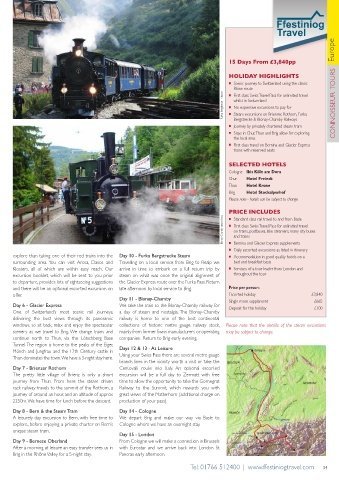 explore than taking one of their red trains into the Day 10 - Furka Bergstrecke Steam ■ Accommodation in good quality hotels on a