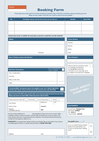Please make sure you have read the Information and Booking Conditions (Pages 67-68) before completing, signing and returning your form.