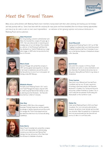creating many of our rail holidays. More recently Having joined Ffestiniog Travel in 2015 as UK Rail